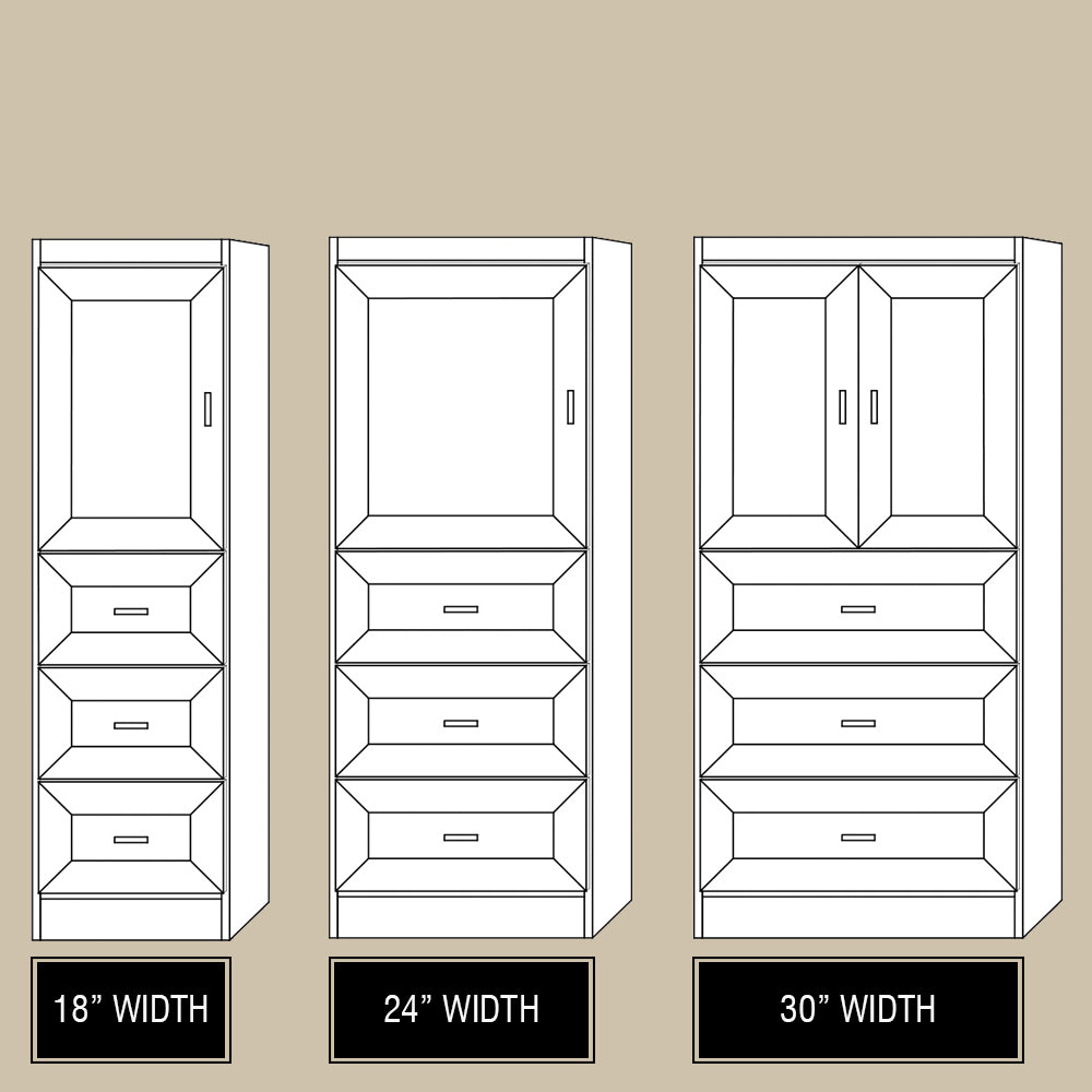 This beautiful side cabinet offers plenty of hidden storage for the side of your Horizontal Murphy Bed. One Door on top with an Adjustable Shelf, and Three Drawers on the bottom. This cabinet comes with One Shelf.