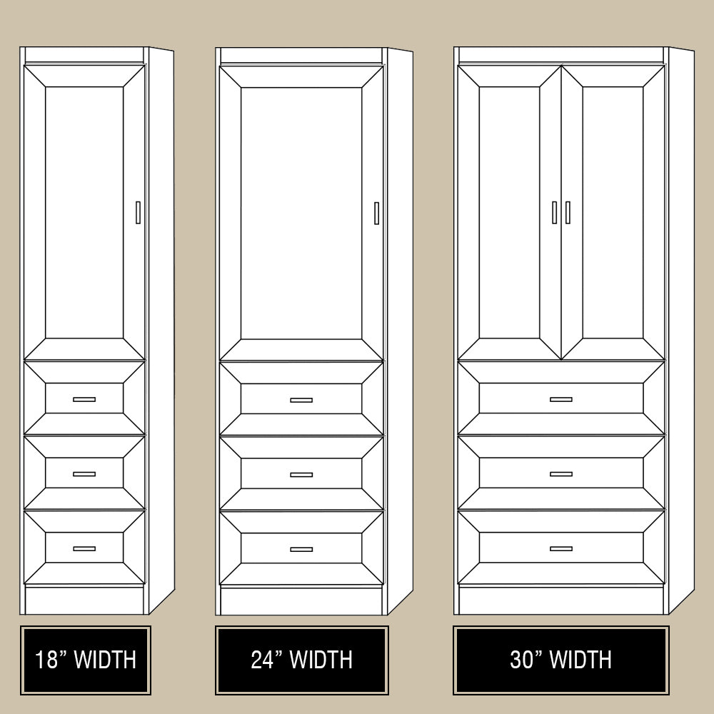 This beautiful side cabinet offers plenty of hidden storage for the side of your Vertical Murphy Bed. The door on top opens to reveal two fully adjustable shelves, while the bottom features three full extension drawers.