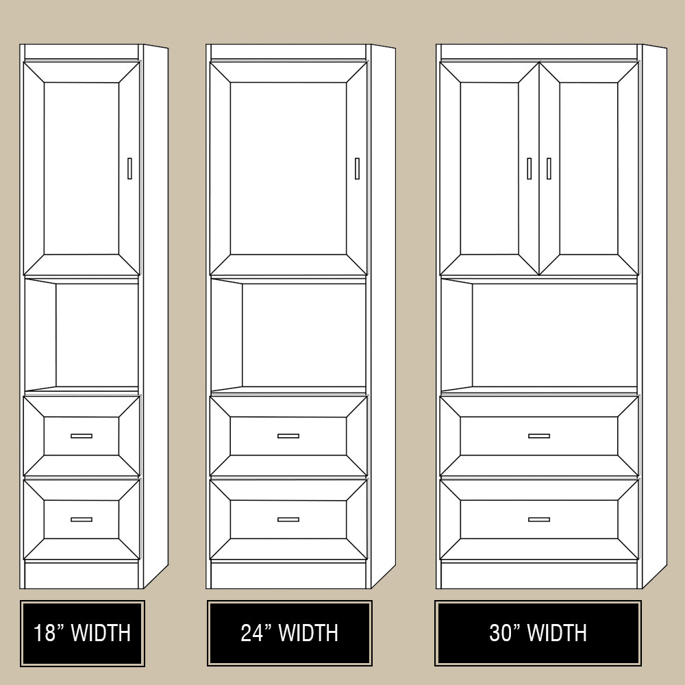 This beautiful side cabinet offers plenty of hidden storage for the side of your Vertical Murphy Bed. The door on top opens to reveal one fully adjustable shelf, an opening for storage as a nightstand table, and three full extension drawers.